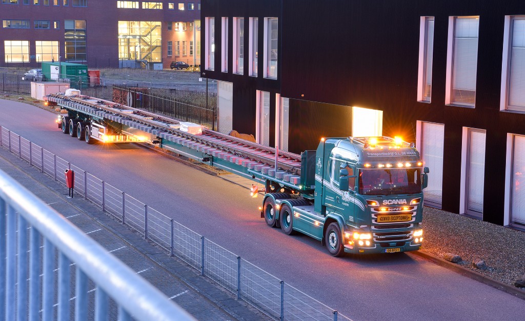 A triple extendable (3x extendable) flat trailer can reach a length of 36 meters and is often used for extremely long piles, large concrete works and wind turbine blades.