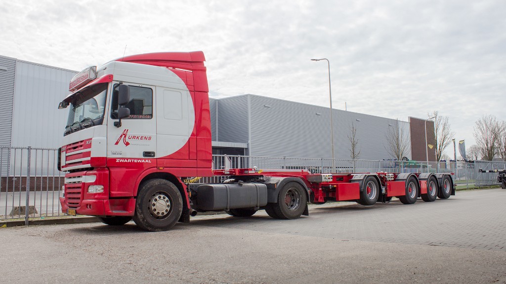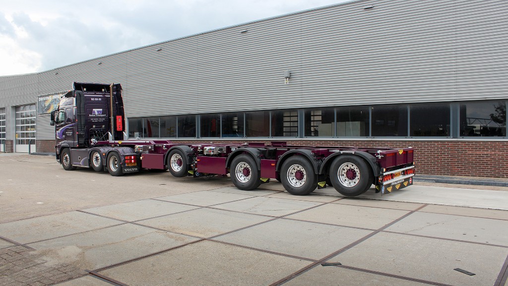 The 2CONnect 1 + 3 is specially designed for hauliers who use a 3 axle truck (predecessor). In combination with this truck, one axle is sufficient to transport a 20 ft container.
