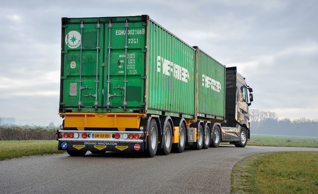 This container chassis offers you many advantages. This way you can always easily load and unload two 20ft containers. This gives the driver a more user-friendly chassis.5-Axle connectable container chassis 2CONNECT (2+3)