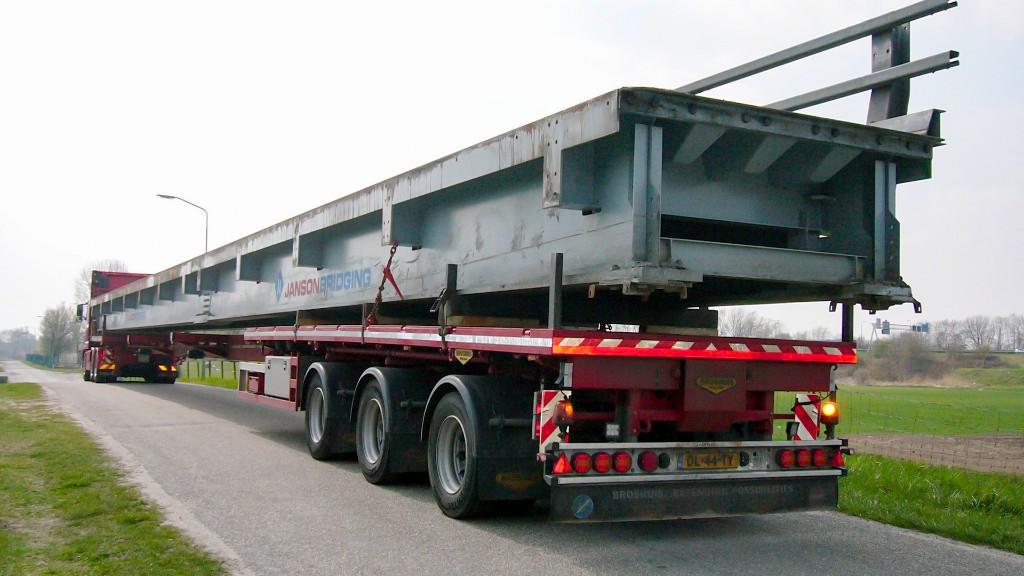 Our triple extendable flat trailers can reach a maximum length of 36 meters
