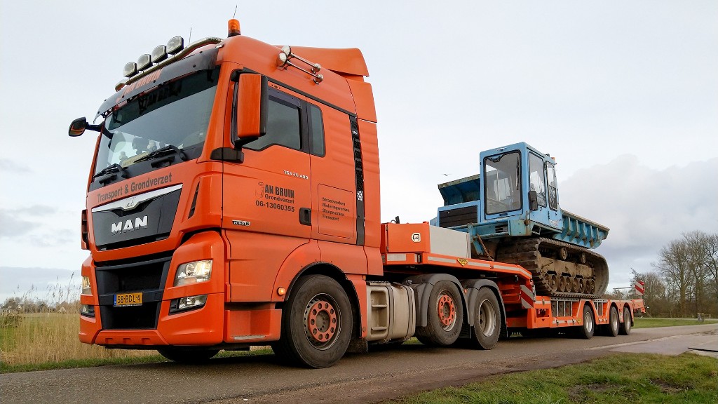 Our 3-axle hydraulically steered construction semi low-loader is equipped with the fuel-saving ECO ramp. Thanks to this ramp, wheeled and tracked vehicles can be easily and safely loaded and unloaded. Due to the double wheel well, the transport height of machines can be reduced. The trailer is also provided with a crane arm recess that is open on both sides. As a result, overhanging loads can also be taken along. Thanks to the robust construction, this is a trailer with a long service life.