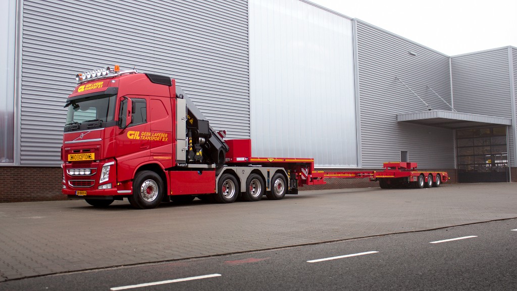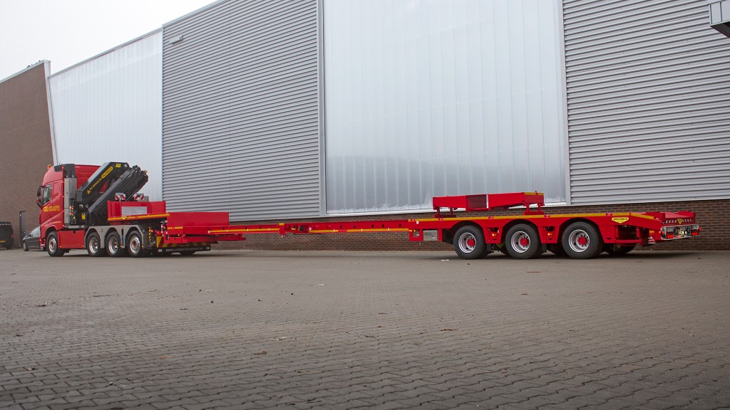 The double extendable, 3-axle, hydraulically steered semi low loader is the strongest of its kind. Due to its long lifespan, the cost per year remains low.3-axle semi low loader hydraulically steered double extendable