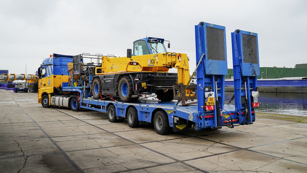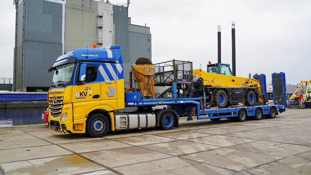 The 3-axle hydraulically steered semi low-loader is equipped with hydraulic ramps. This makes loading and unloading wheel and tracked vehicles safer and easier. This multifunctional trailer steers very accurately and easily behind the truck. Our hydraulically-steered semi low-loaders are known for their sturdiness. This 3-axle variant is equipped with a separate axle distance (wide spread). The trailer is plated for 10 tonne axle load. Other 3-axle semi low loaders only achieve 9 tonnes per axle. This offers an extra 3 tonnes payload overall, with this semi low loader. This 3-axle vehicle is built in such a way that almost any load can be transported. An ideal trailer for your fleet!