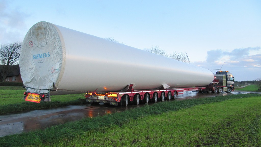 The 7-axle double extender semi low loader can transport long loads with ease. In combination with the hydraulic steering, the trailer remains highly manoeuvrable.7-axle semi low loader hydraulically steered double extendable