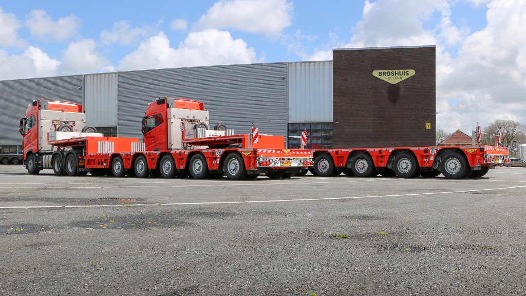 One of the most popular pendle axle semi low loaders in the Broshuis range is the 5-axle. This is because the pendle axle semi low loader falls within the legal combination length. This means that no permits are required when the vehicle is retracted, and a significant payload can still be transported. The 5-axle pendle axle semi low loader is extendable (single extension) and can reach a length of 19.3 meters. This makes it possible to transport long, as well as heavy loads. Thanks to the high stroke, the semi low loader can easily be used for jacking.