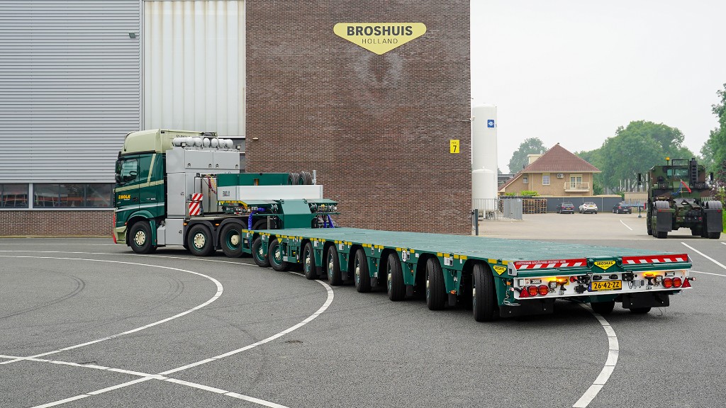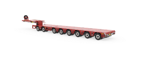 For the transport of extremely heavy and high loads, the 8-axle pendle semi low loader is the most popular semi trailer. Because it is multifunctional, almost any load can be transported with this 8-axle trailer. Thanks to our many years of experience in building semi low loaders and the proven attributes of our pendle axles by the American Defense, you can be assured that our products are of the highest quality. This 8-axle version is designed as a 2 + 6 configuration, where the first two axles remain attached to the gooseneck during extension and act as a dolly. These two axles steer with the truck, making the 8-axle pendle semi low-loader very manoeuvrable. The trailer can extend to a maximum length of 26 meters.