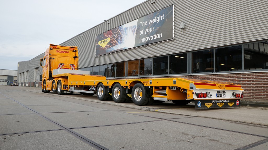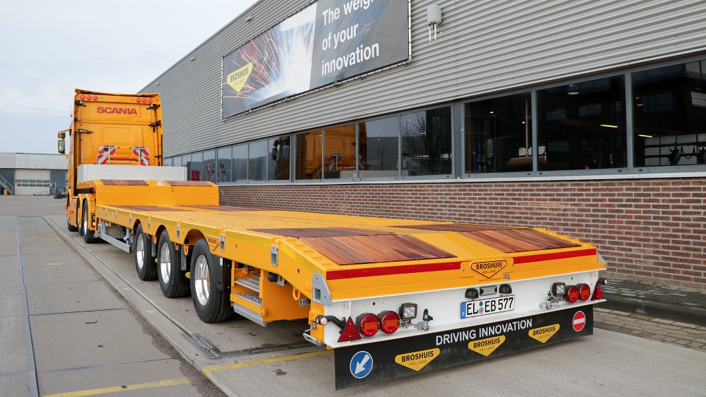 This 3-axle self-tracking semi low loader is not extendable. This saves weight and provides extra payload capacity. The trailer is completely within the legal dimensions. An ideal semi-trailer that will augment any fleet. This semi low-loader is distinguished by its high build quality and long service-life. The robust construction ensures that the semi-trailer is a true all-rounder.