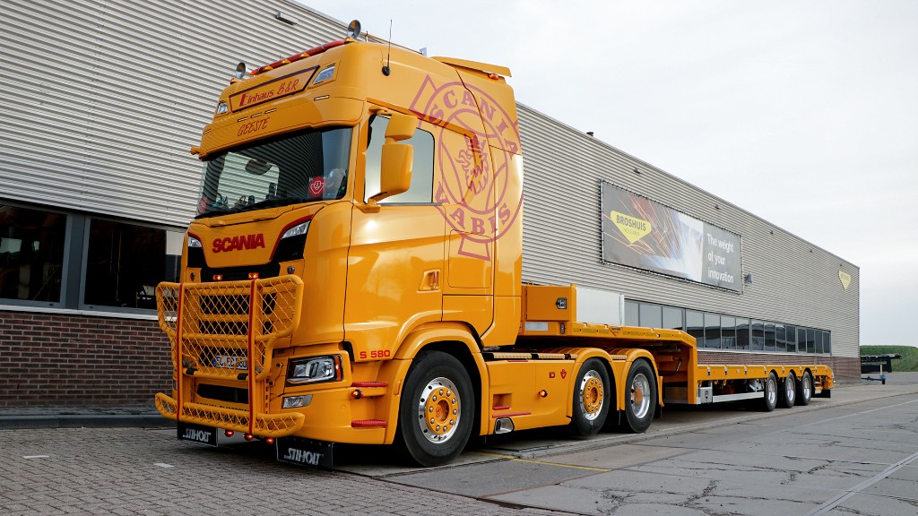 This self-tracking trailer is not extendable, but is extremely robust and has a high payload. Thanks to its high build-quality, the semi-trailer has a long service life.3-axle non-extending semi low loader self-tracking