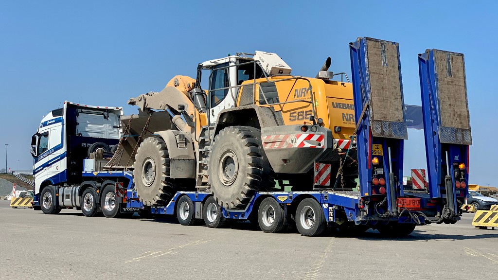This multifunctional 4-axle self-tracking semi low loader has wheel wells, a crane arm recess and ramps. The ultimate trailer for the transportation of construction equipment. This trailer has all of the features that you are likely to need. The trailer has 2 pairs of wheel wells (where the front wheel well can be made larger by sliding out), a crane arm recess and ramps, so that almost any type of construction machine can be transported. Adding wheel wells to a trailer has the potential to remove strength, but thanks to our specialist knowledge and latest computer and production technologies, we have been able to ensure that the trailer retains its rigidity. You can buy a wheel well trailer from the specialist...