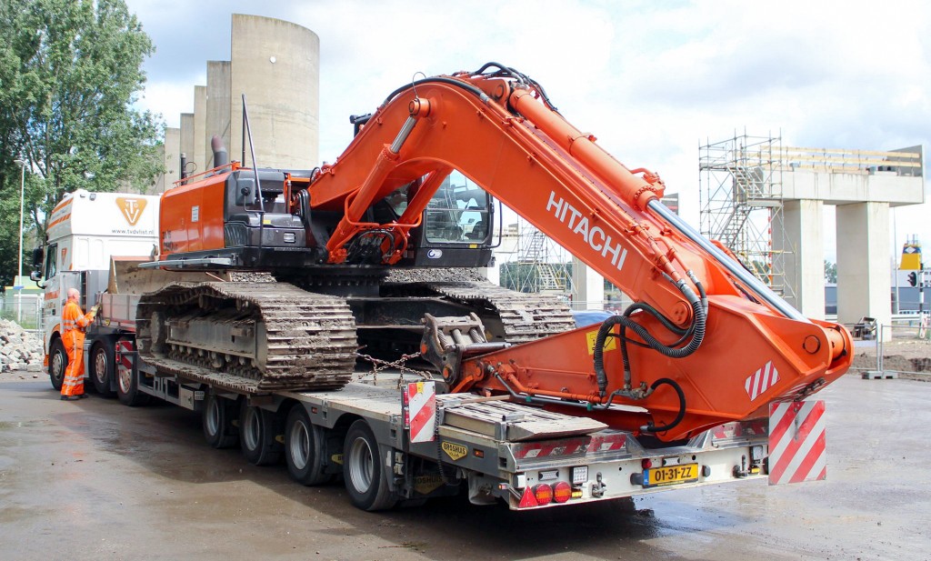The semi low loader 4-axle self-tracking semi low loader with ECO-ramp is the ideal solution for transporting wheel loaders with a high ground clearance. The ECO-ramp has many advantages over the normal ramps. Because the ramp is horizontal, fuel savings can be up to about 20% and you can easily load over the ramps offering greater flexibility. The trailer is single extendable, up to 18 meters long.