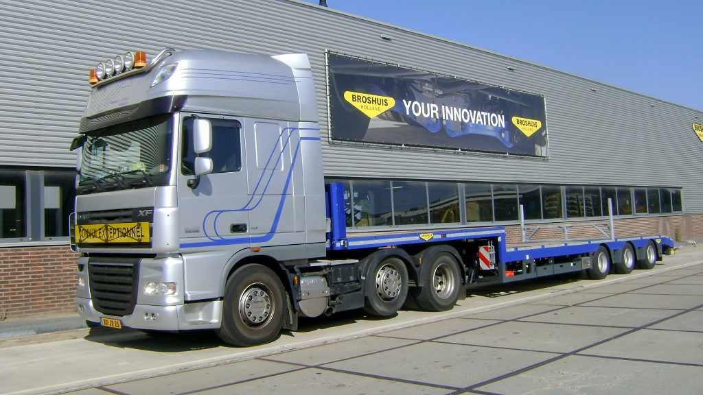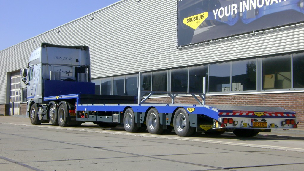 The 3-axle semi low-loader SL2 is a semi trailer with independent suspension. By designing the trailer with this system, an extremely low loading floor is created. At 780 mm, the trailer can still drive and steer with ease. Despite the fact that this trailer extends twice, this has no effect on the loading floor height. This is what makes this trailer so unique. Longer loads can be easily transported, partly because the independent suspension has a steering angle of 57º. The system also ensures a low tare weight, increasing the payload. The semi low loader is built in a robust manner, entirely in the Netherlands, so that you can be assured that this is the strongest 3-axle trailer of its kind.