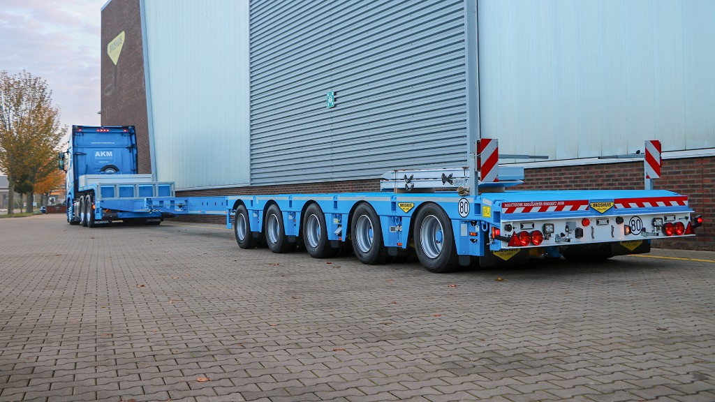 The 5-axle semi low loader SL2 double extender is a real powerhouse. The ideal trailer for heavy, as well as long loads. This 5-axle semi low-loader is a semi trailer with independent suspension. The semi trailer has an extremely low loading floor height of 780 mm and can still drive and steer with ease. With its enormous length, the trailer can still reach difficult locations thanks to the 57º steering angle. The SL2 also has a low curb weight, increasing its payload. The semi low-loader is built in a robust manner, entirely in the Netherlands and you can be confident that this trailer will have a long operating lifespan.