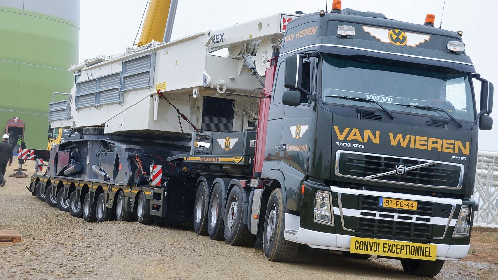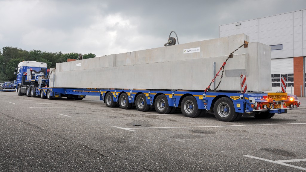 For the transportation of extremely heavy and high loads, the 8-axle semi low loader on independent suspension is one of the most frequently-used trailers. This means that you have chosen a proven concept in our range of 100 tonne trailers. Because the semi trailer is multifunctional, almost any load up to 100 tons can be transported with this 8-axle trailer. Thanks to our many years of experience in building semi low-loaders, you can be assured of the highest quality product. This 8-axle variant is designed as a 2 + 6 configuration, where the first two axles remain attached to the gooseneck during extension, acting as a dolly. This provides the ideal weight distribution. The dolly is even extendable one times. These two axles steer with the truck, making the 8-axle semi low loader highly-manoeuvrable. The trailer is a single extender and can reach a length of up to 24 meters.