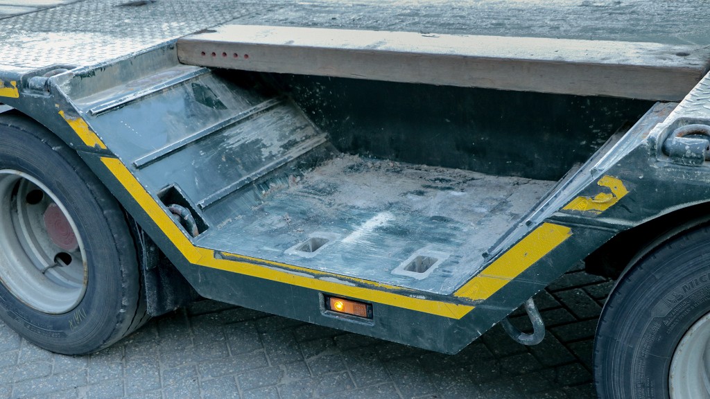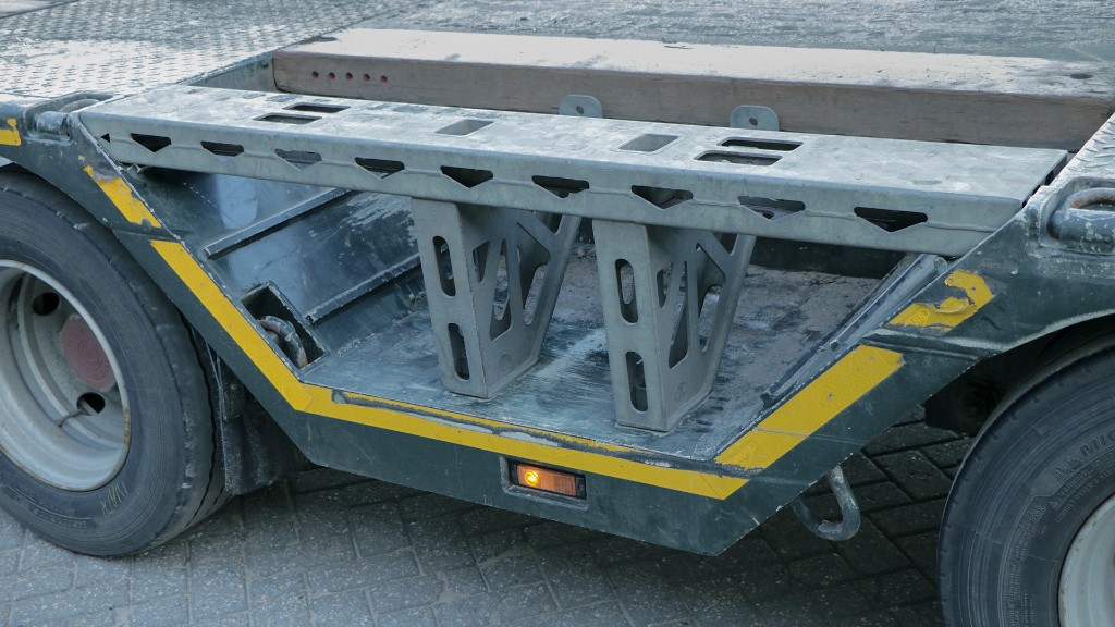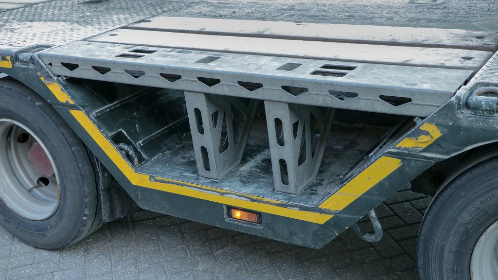 A wheel well is an opening or sunken area in the cargo bed. Lowering the cargo bed at certain points makes it possible to position the tyres of certain vehicles lower, which easily reduces the transport height. This makes it easy to transport large machines on a semi low loader. Aside from lowering the cargo bed, the wheel well is also an excellent form of load securing.